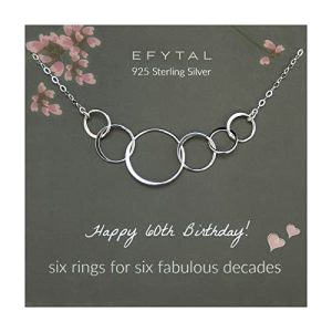 60th Birthday Gifts for Women, Sterling Silver 6 Circle Necklace for 60 Year Old Woman, 60 Year Old Birthday Gifts for Women, Sixty