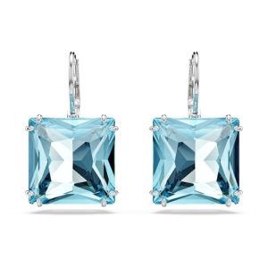 Millenia Earrings, Square cut crystal, Blue, Rhodium plated