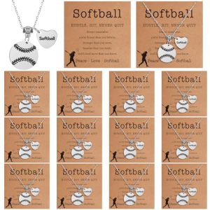 Landical 12 Sets Necklace Team Gifts for sport lovers Inspirational Jewelry Pendant Sport Necklace with Card and OPP Bags Team Chain Gifts for Sports Player Party Favors